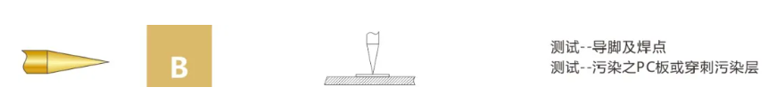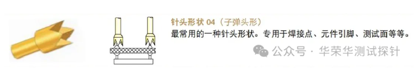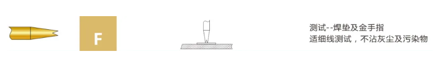 3. 大四爪型:最常用的一種針頭形狀。專用于焊接點(diǎn)、元件引腳、測試面等。