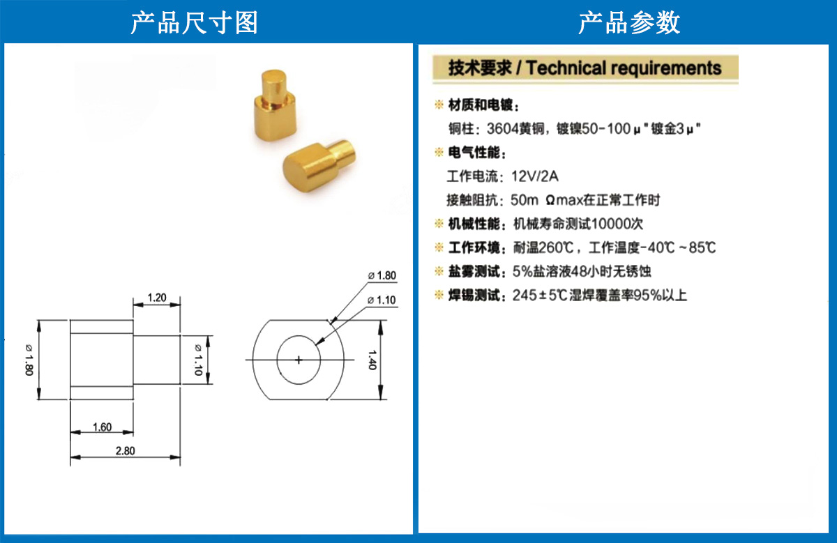 產(chǎn)品型號:1.8*2.8銅柱
