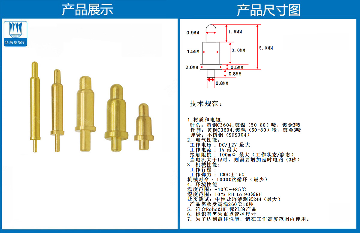 產(chǎn)品介紹:這個(gè)針通常用于智能手表,藍(lán)牙耳機(jī)上的有充電的功能,但是探針總體來(lái)說(shuō)還是測(cè)試的