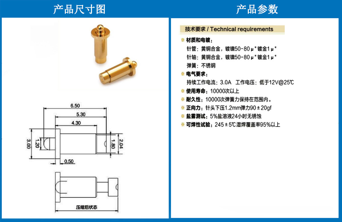 3.0*6.5電極針 當(dāng)前位置:首頁(yè) » POGO PIN充電彈簧頂針 » 電極針