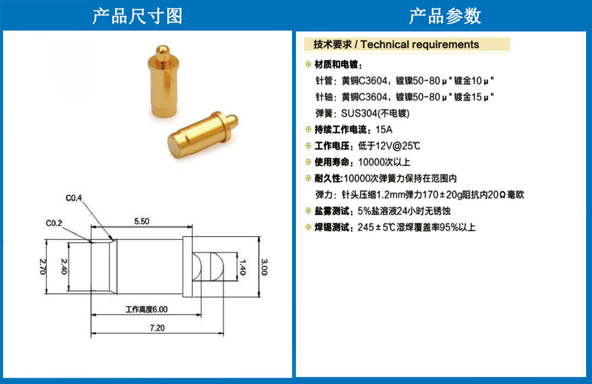 3.0*7.20電極針 當(dāng)前位置:首頁(yè) » POGO PIN充電彈簧頂針 » 電極針