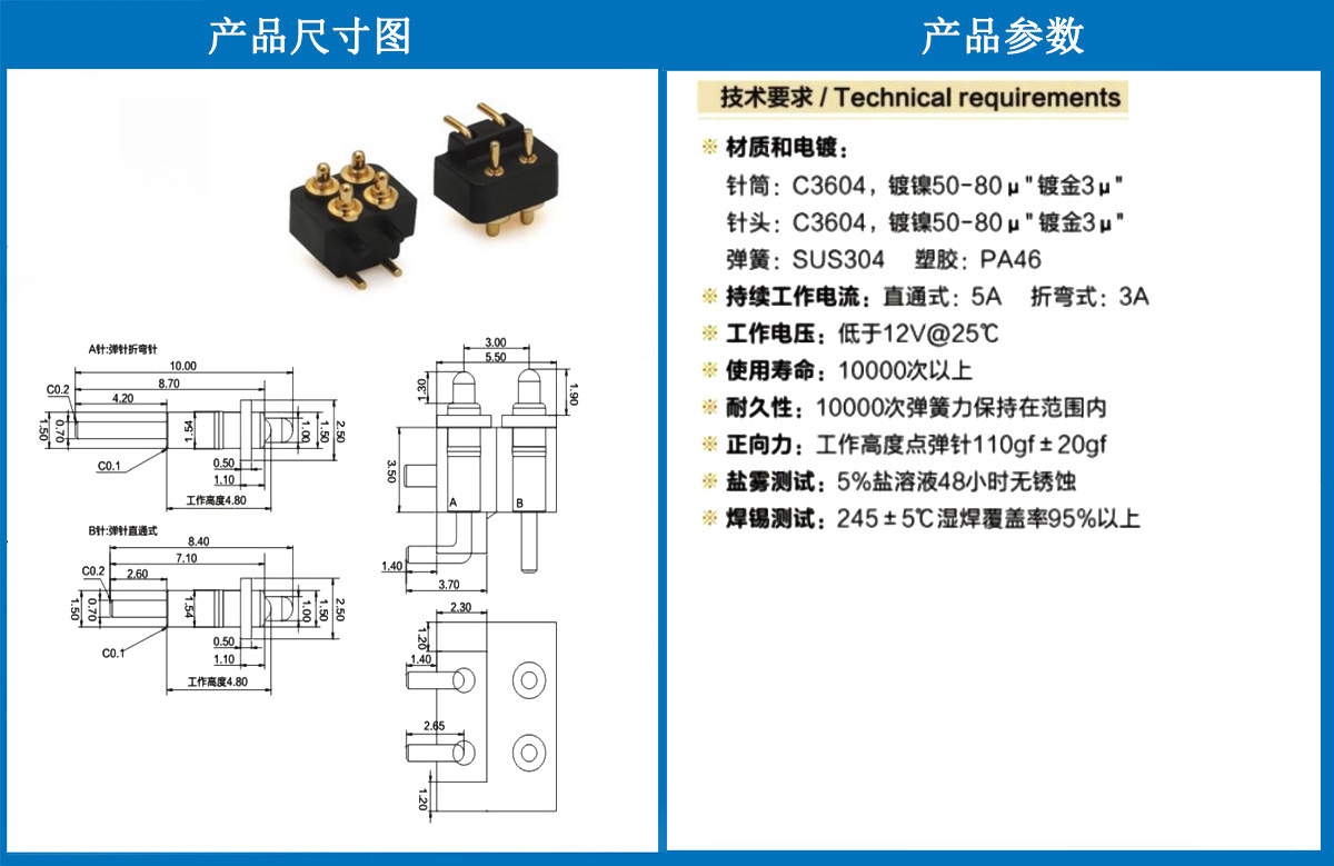 產(chǎn)品介紹:這個(gè)針通常用于智能手表,藍(lán)牙耳機(jī)上的有充電的功能,但是探針總體來說還是測試的