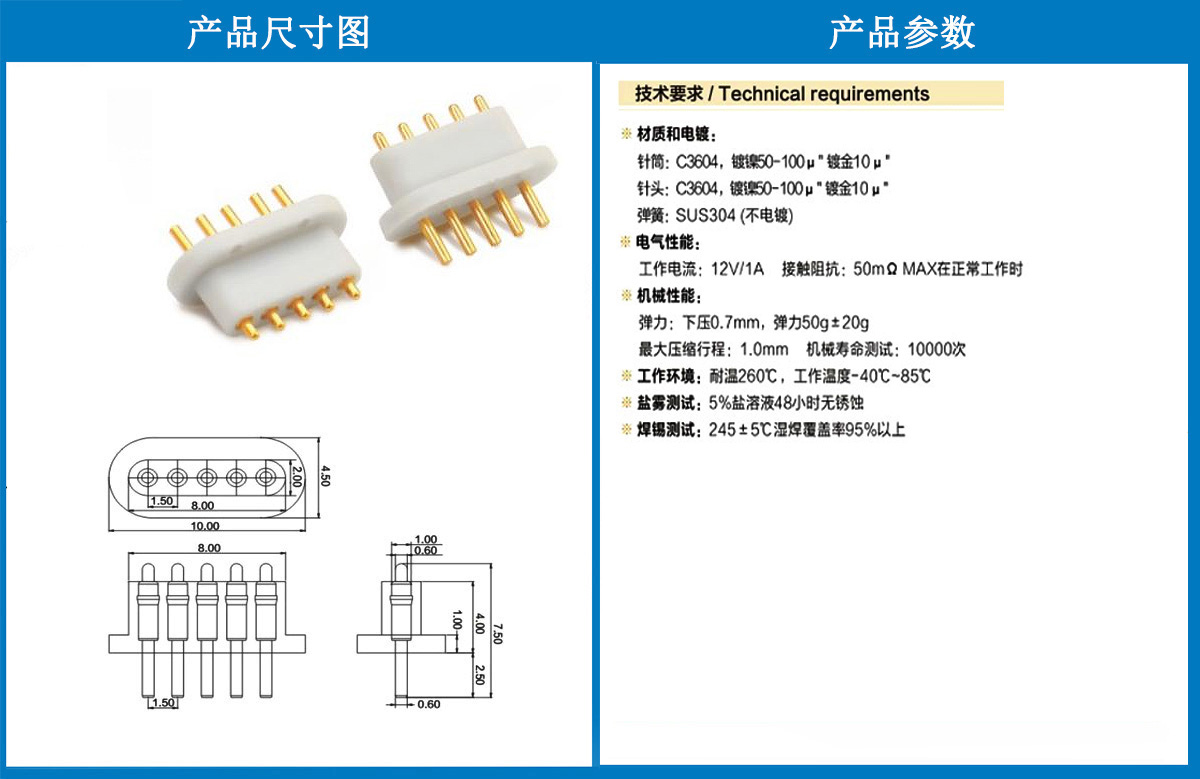 產(chǎn)品介紹:這個針通常用于智能手表,藍(lán)牙耳機(jī)上的有充電的功能,但是探針總體來說還是測試的